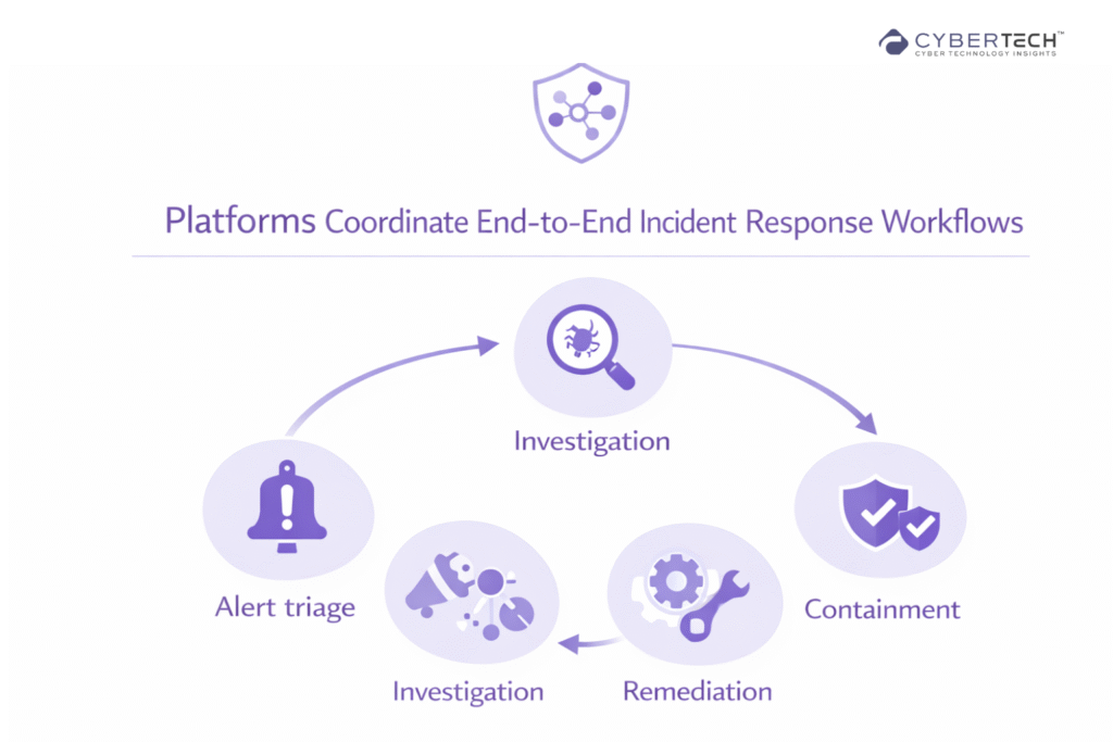 Coordinates investigation, containment, and remediation workflows across tools and teams through a centralized control layer.